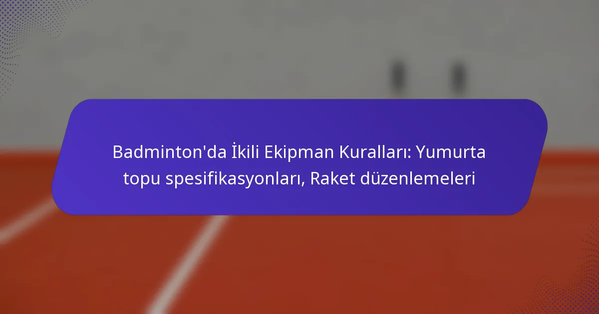 İkili badmintonunda, shuttlecock ve raketlerin spesifikasyonları adil oyun ve optimal performans sağlamak için esastır. Shuttlecock’lar belirli boyut, ağırlık ve malzeme standartlarına uymalıdır, raketler ise boyut, ağırlık ve tel gerilimi açısından düzenlenmiştir. Bu kurallara aşina olmak, oyuncuların oyunlarını geliştirmek ve rekabetçi maçlar sırasında tutarlılığı korumak için uygun ekipmanı seçmelerine yardımcı olur.