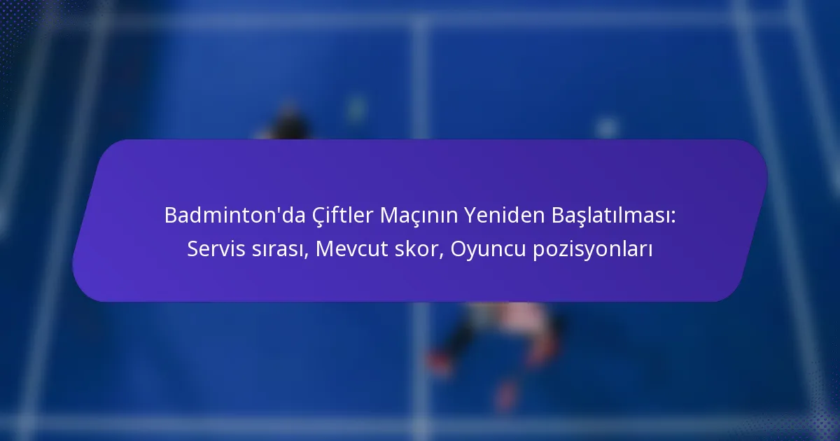 Çiftler badminton maçını yeniden başlatmak, servis sırası, mevcut skor ve oyuncu pozisyonları ile ilgili belirli kuralları içerir. Bu unsurların anlaşılması, oyuna sorunsuz bir geçiş sağlanmasına ve maçın bütünlüğünün korunmasına yardımcı olur.